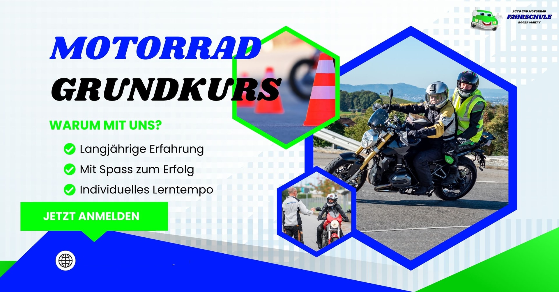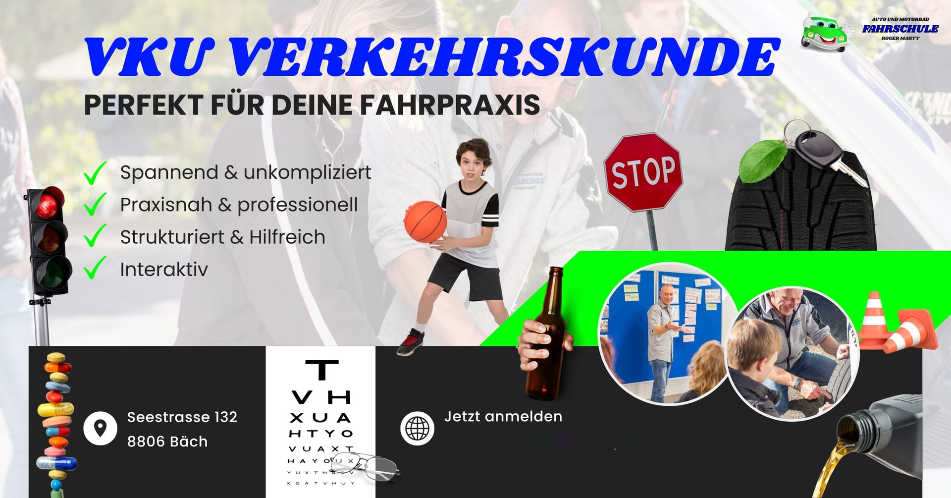 Roger Marty Driving School offers you everything you need for driving a car or motorcycle. From the emergency helper course to traffic awareness, as well as car driving lessons, trailer driving lessons and basic motorcycle courses/motorcycle driving lessons. You benefit from many years of experience, which is reflected in the high success rate. You can also attend other interesting courses at the Roger Marty driving school. The Roger Marty driving school is located in Bäch SZ. The village lies on Lake Zurich and borders the canton of Zurich to the north. The modern course location is easily accessible by public transport from all directions.